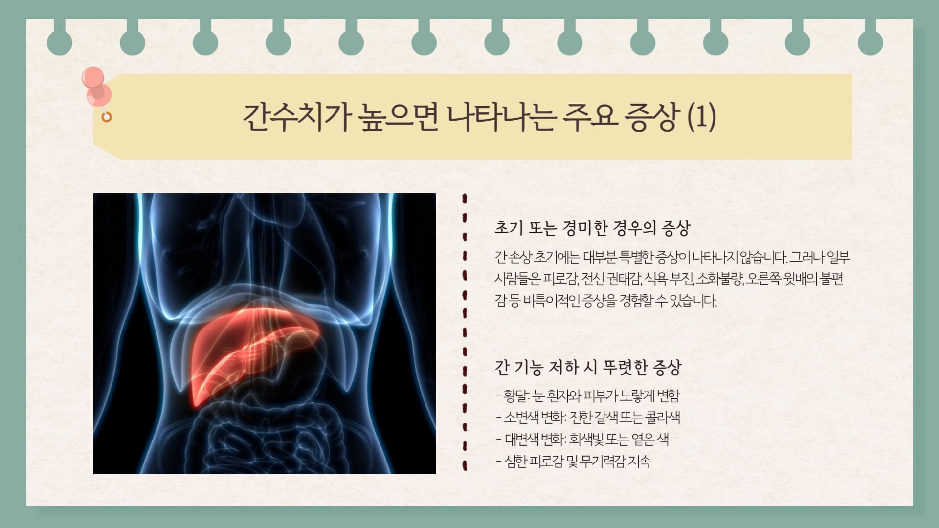 간수치가 높으면 나타나는 증상을 간과하지 않고 적극적으로 대처하는 것이 장기적인 간 건강을 지키는 가장 현명한 방법입니다.