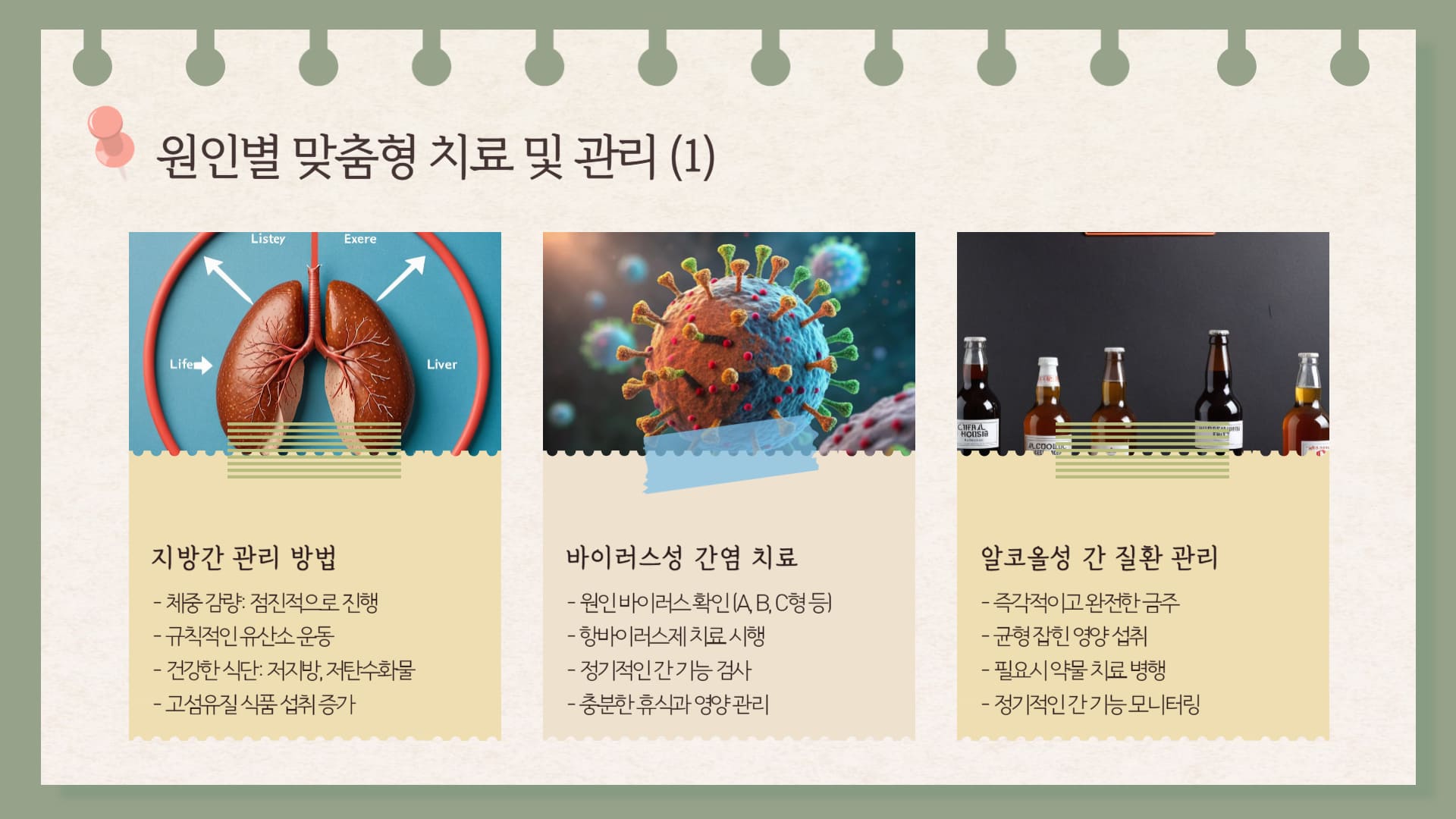 간수치 상승의 원인이 밝혀지면, 그에 따른 맞춤형 치료와 관리가 시작됩니다. 예를 들어,