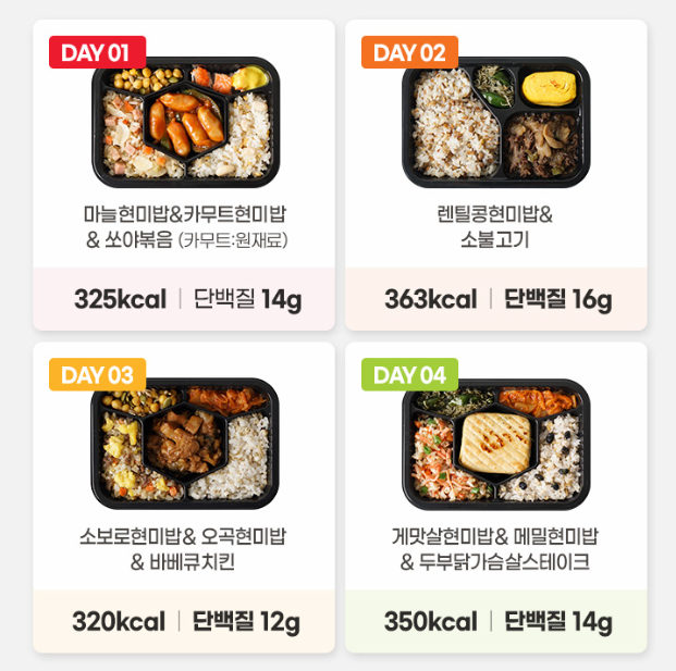 - 전문적인 식단 설계: 전문 영양사가 칼로리뿐만 아니라 당류, 나트륨, 필수 영양소 등을 체계적으로 설계하여 더욱 건강한 식단을 제공합니다.