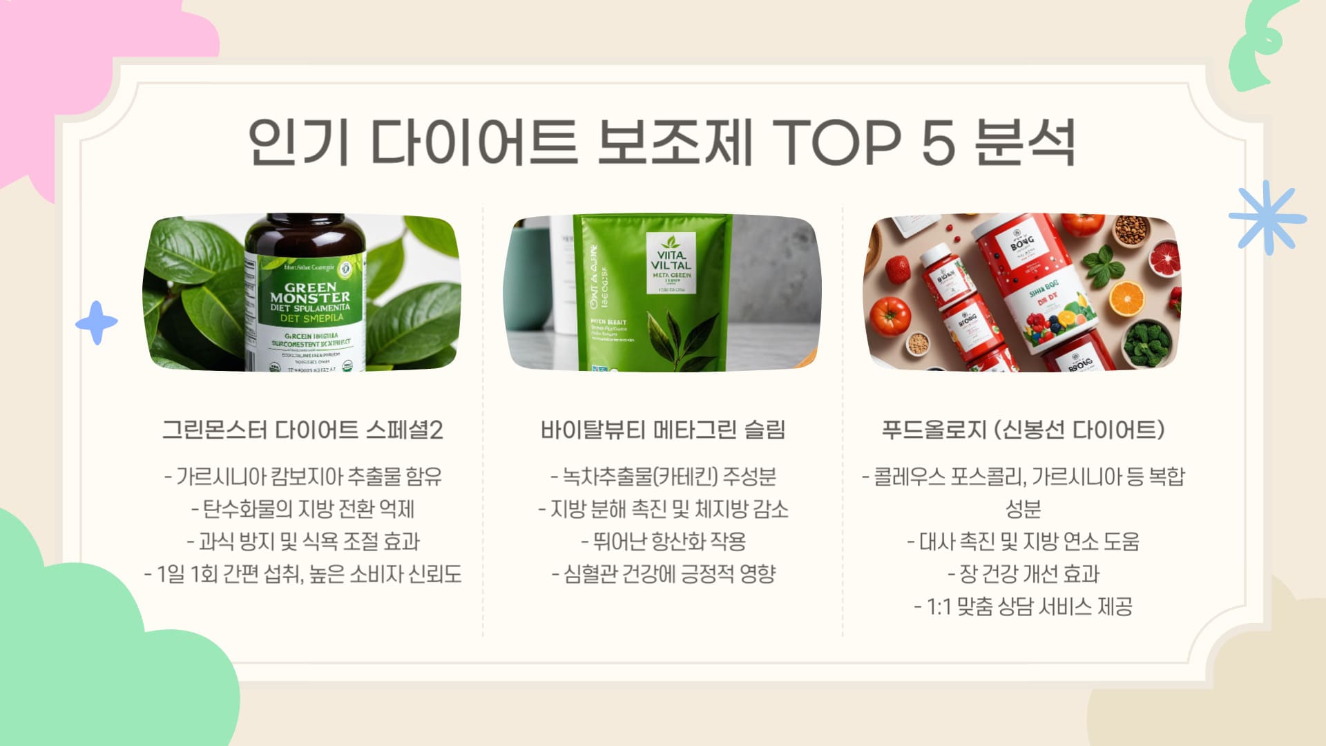 2. 인기 다이어트 보조제 TOP 5: 성분, 효과, 특징