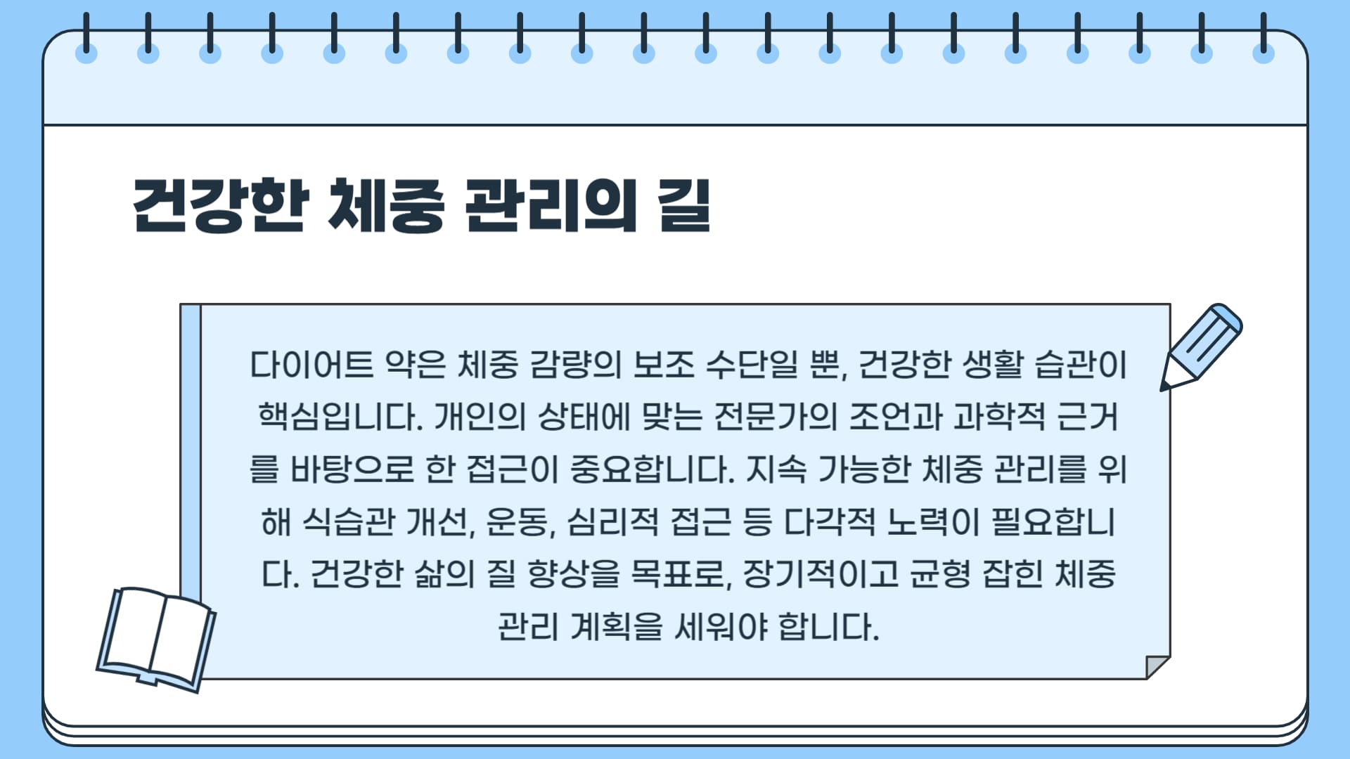 어떤 다이어트 약 종류를 고려하든, 그 효과와 한계를 명확히 인지하는 것이 중요합니다.