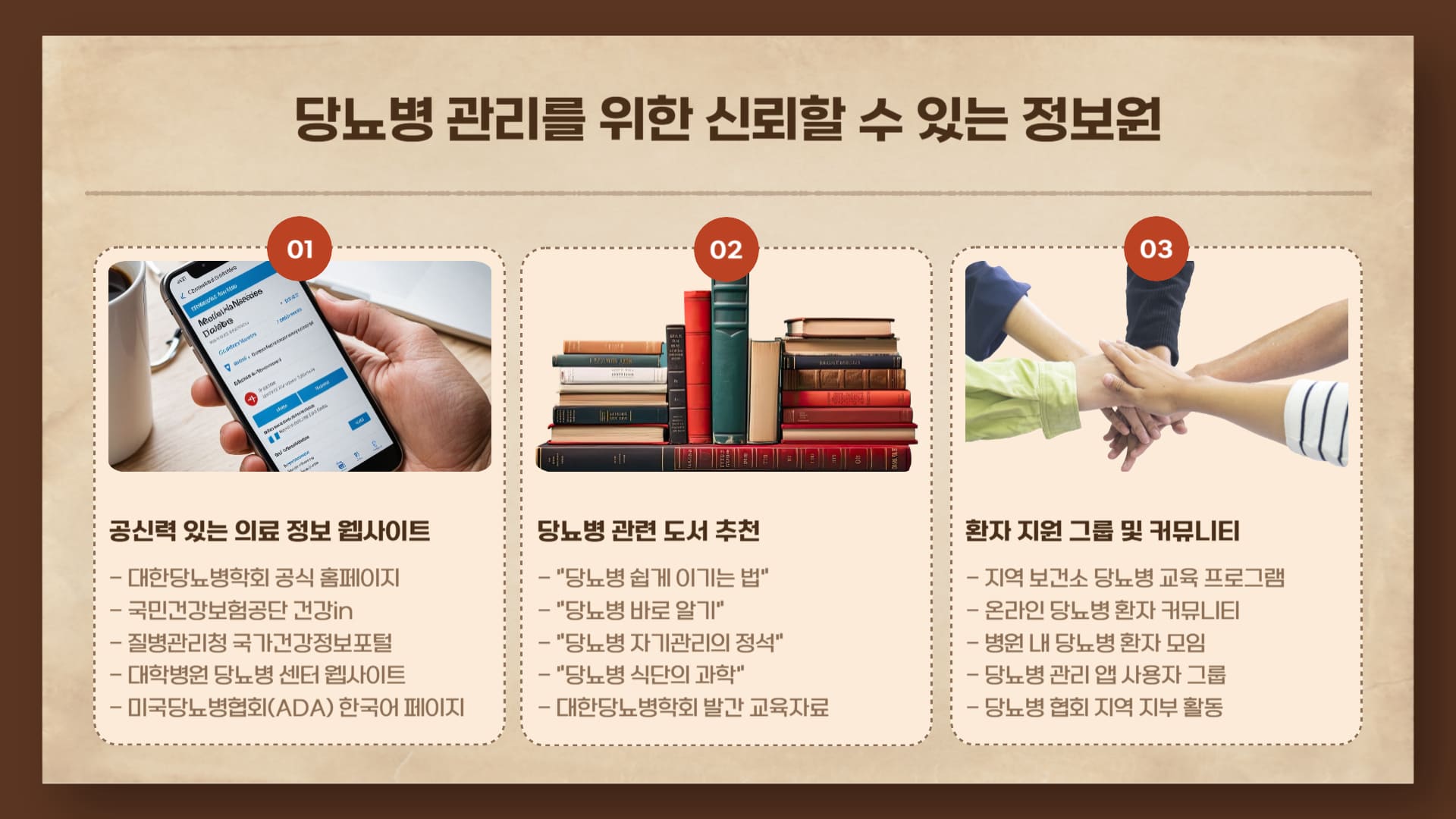 • 자가 진단 및 민간요법 피하기: 인터넷 정보나 자가 혈당 측정기 수치만으로 스스로 당뇨병이라고 판단하거나, 과학적으로 검증되지 않은 민간요법이나 건강기능식품에 의존하는 것은 매우 위험하며, 적절한 치료 시기를 놓치게 할 수 있습니다.