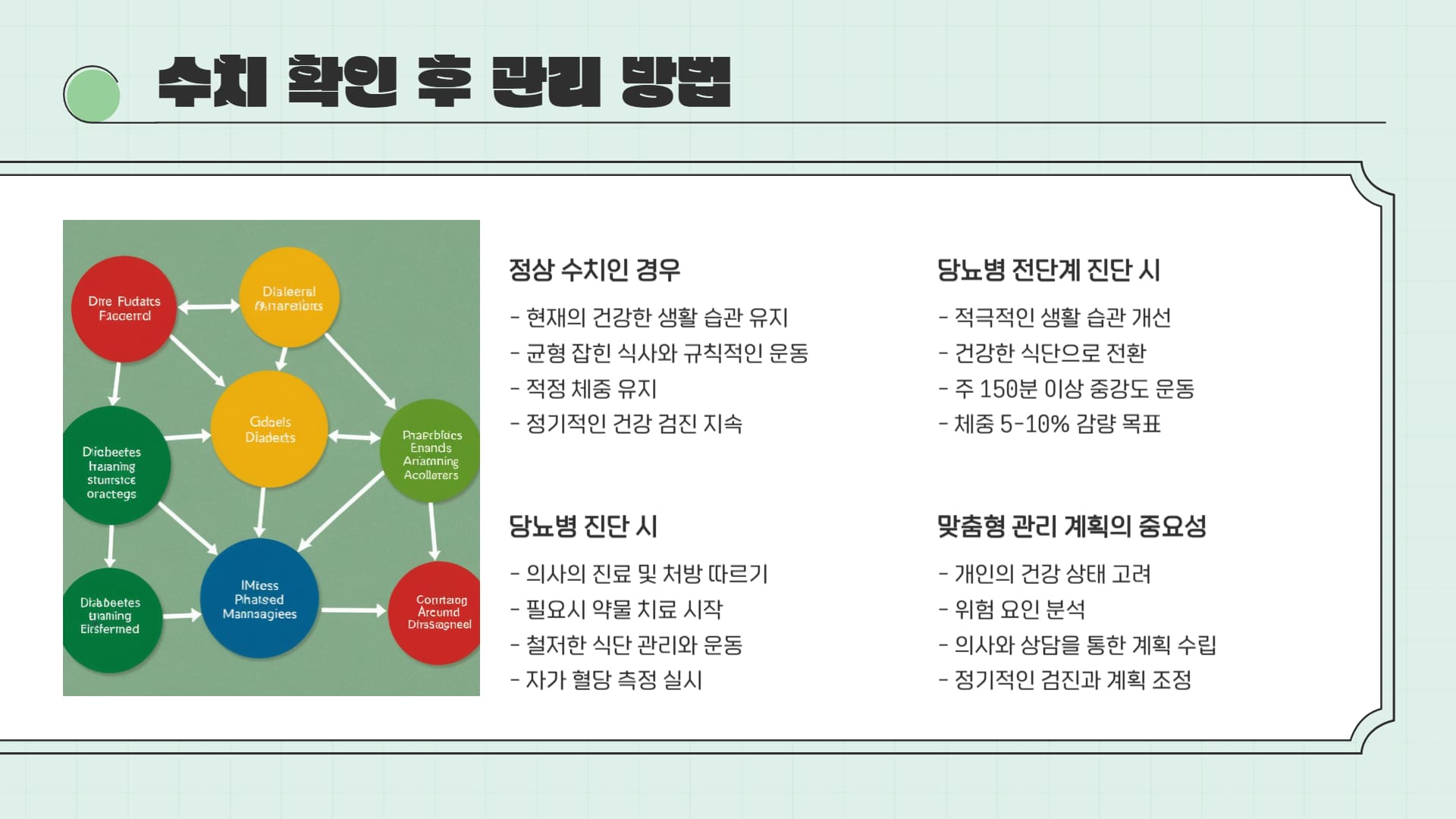 어떤 경우든 당뇨 수치 기준 확인 후에는 개인의 건강 상태와 위험 요인을 고려한 맞춤형 관리 계획이 필요합니다.