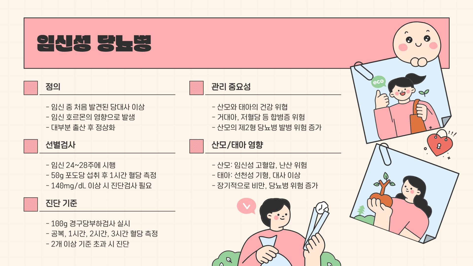 A4: 네, 임신 중에는 태아와 산모의 건강을 위해 더 엄격한 혈당 기준이 적용되며, 보통 임신 중기에 시행하는 경구 당부하 검사를 통해 임신성 당뇨병을 진단합니다. 진단 기준 수치가 일반 성인과 다릅니다.
