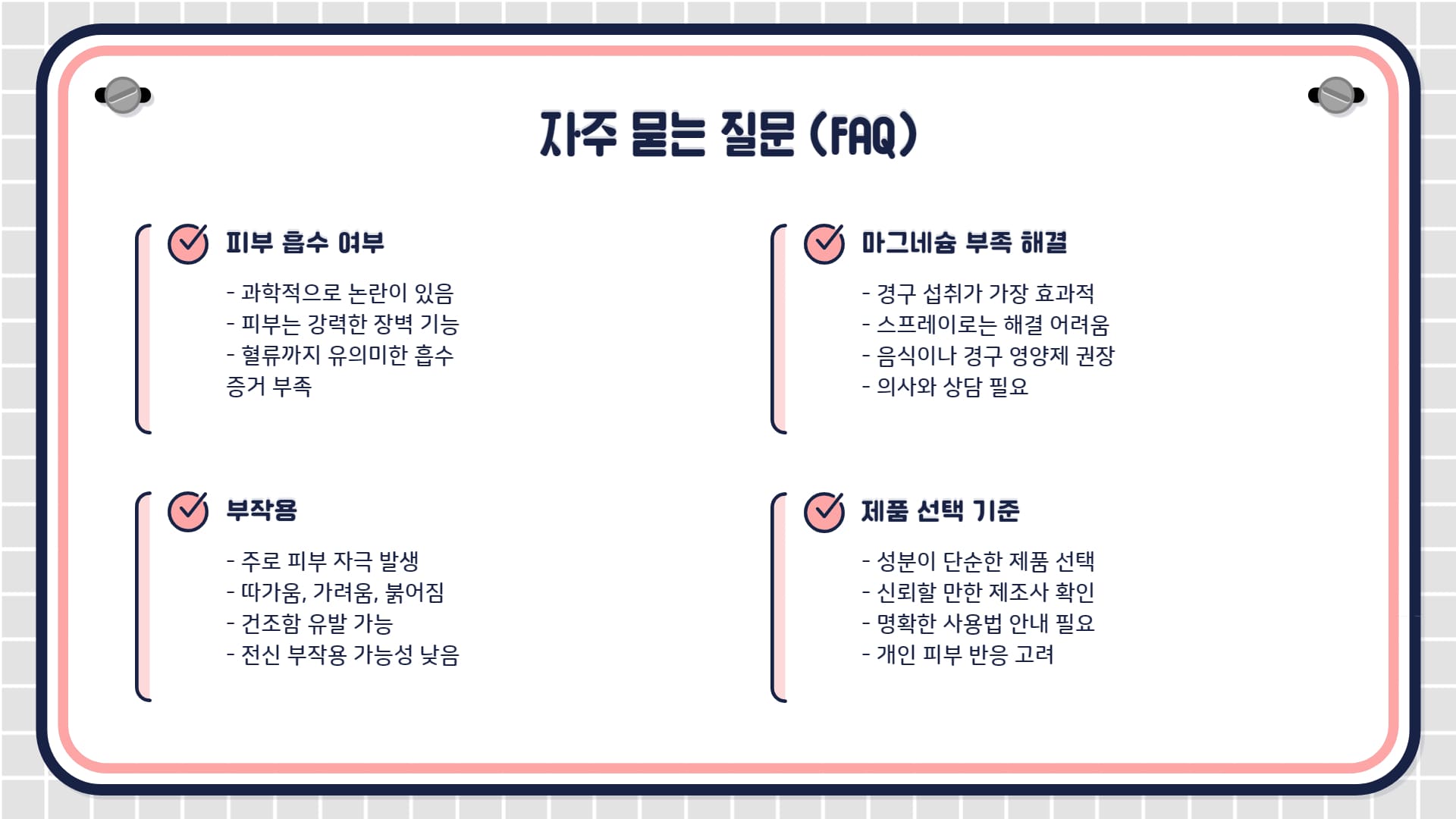 Q3: 마그네슘 스프레이의 부작용은 피부 자극 말고는 없나요?