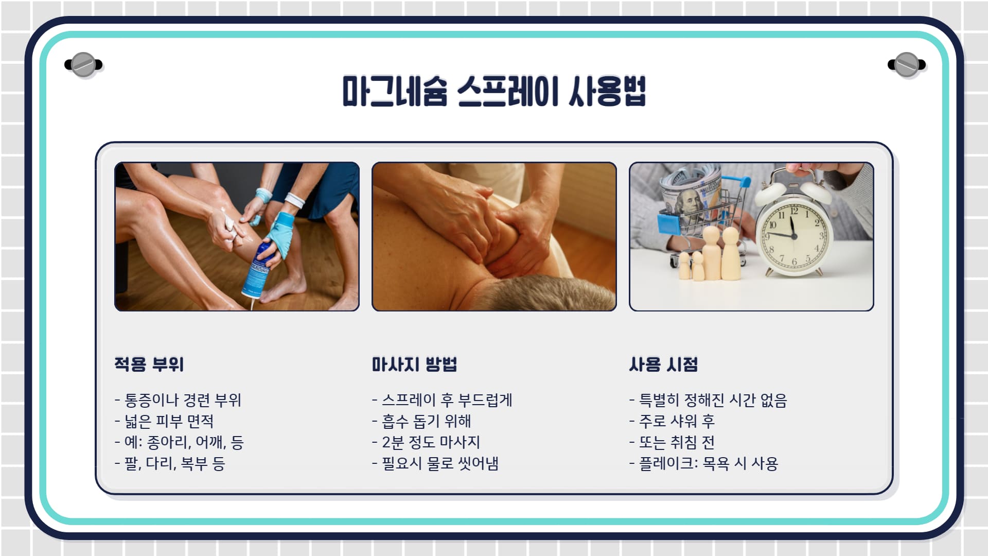 3. 마그네슘 스프레이 사용법 및 주의사항