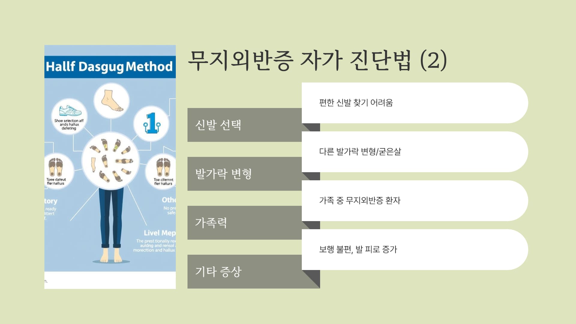 ▶ 무지외반증, 집에서 간단히 체크해 보세요! (자가 진단 항목)
