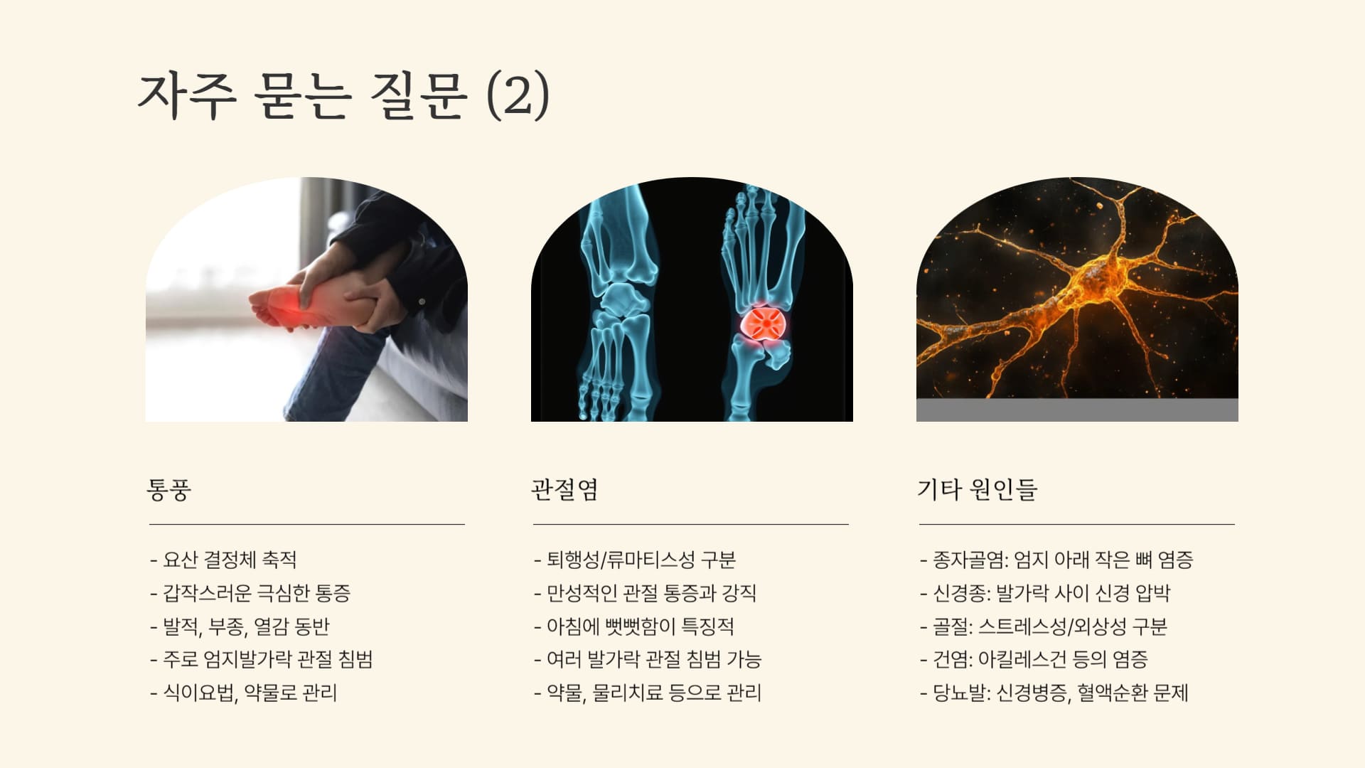 • Q2: 엄지발가락에 통증이 있으면 다 무지외반증인가요? 다른 원인도 있나요?