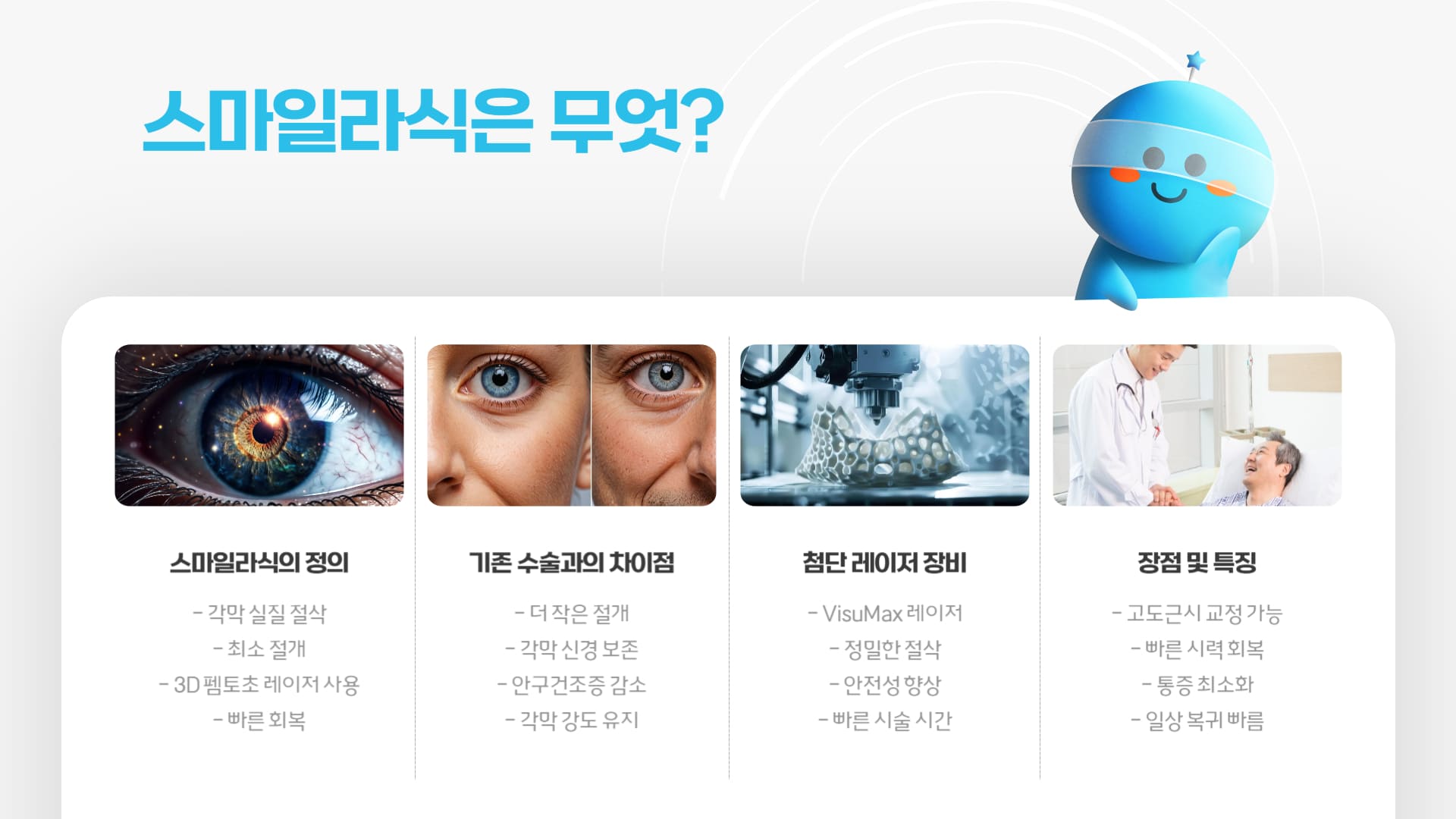 스마일라식 후 회복 수술과정부터 10년후 찐후기를 검색하며 수술에 대한 두려움과 기대를 느끼고 계신가요? 통증은 없을지, 회복은 빠를지, 수술 중 느낌은 어떨지 궁금한 점이 한두 가지가 아