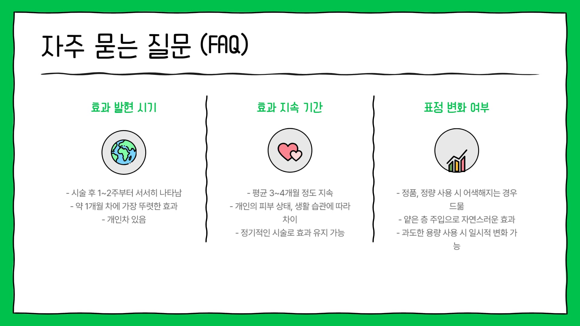 • Q1: 스킨보톡스 효과는 언제부터 나타나고 얼마나 지속되나요?