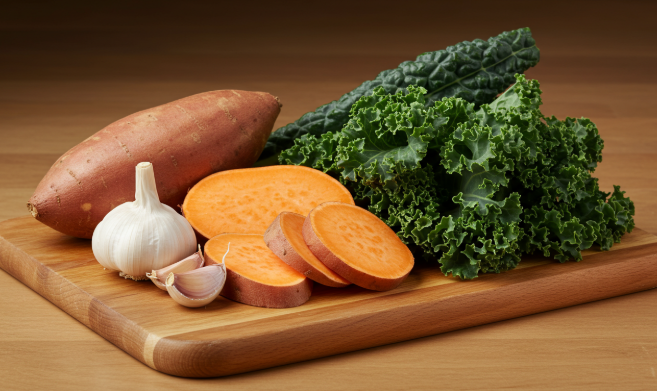 채소 양배추, 콜리플라워, 붉은 피망, 양파, 마늘, 오이, 무, 애호박, 가지 등 비교적 칼륨 함량이 낮은 채소 위주. 비타민, 미네랄, 항산화 성분 풍부.