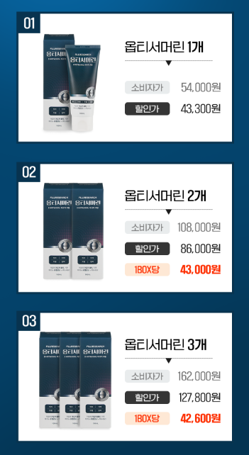 | 제품명 / 제조사 | 옵티서머린 / 필리서치 | 관절 전문 기업에서 개발한 프리미엄 관절·근육 마사지 크림. |