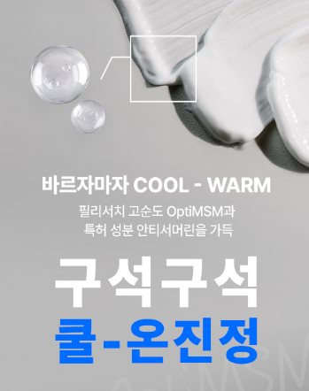 | 주요 효과 | 관절 및 근육 통증 완화, 근육 피로 및 뭉침 해소, 혈액순환 촉진, 붓기 및 열감 진정, 관절 유연성 및 회복력 향상 도움. | 바르는 즉시 시원한 쿨링감, 이후 은은한 온열감이 이어지는 '3단계 냉온찜질 효과'가 핵심. |