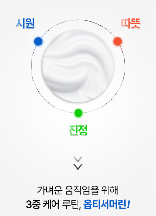 옵티서머린은 고순도 OptiMSM®과 특허 성분 안티서머린의 시너지 효과, 과학적인 3단계 냉온찜질 프로세스, 그리고 끈적임 없이 빠른 흡수력과 은은한 향까지 갖춘 신개념 관절·근육 케어 크림입니다.