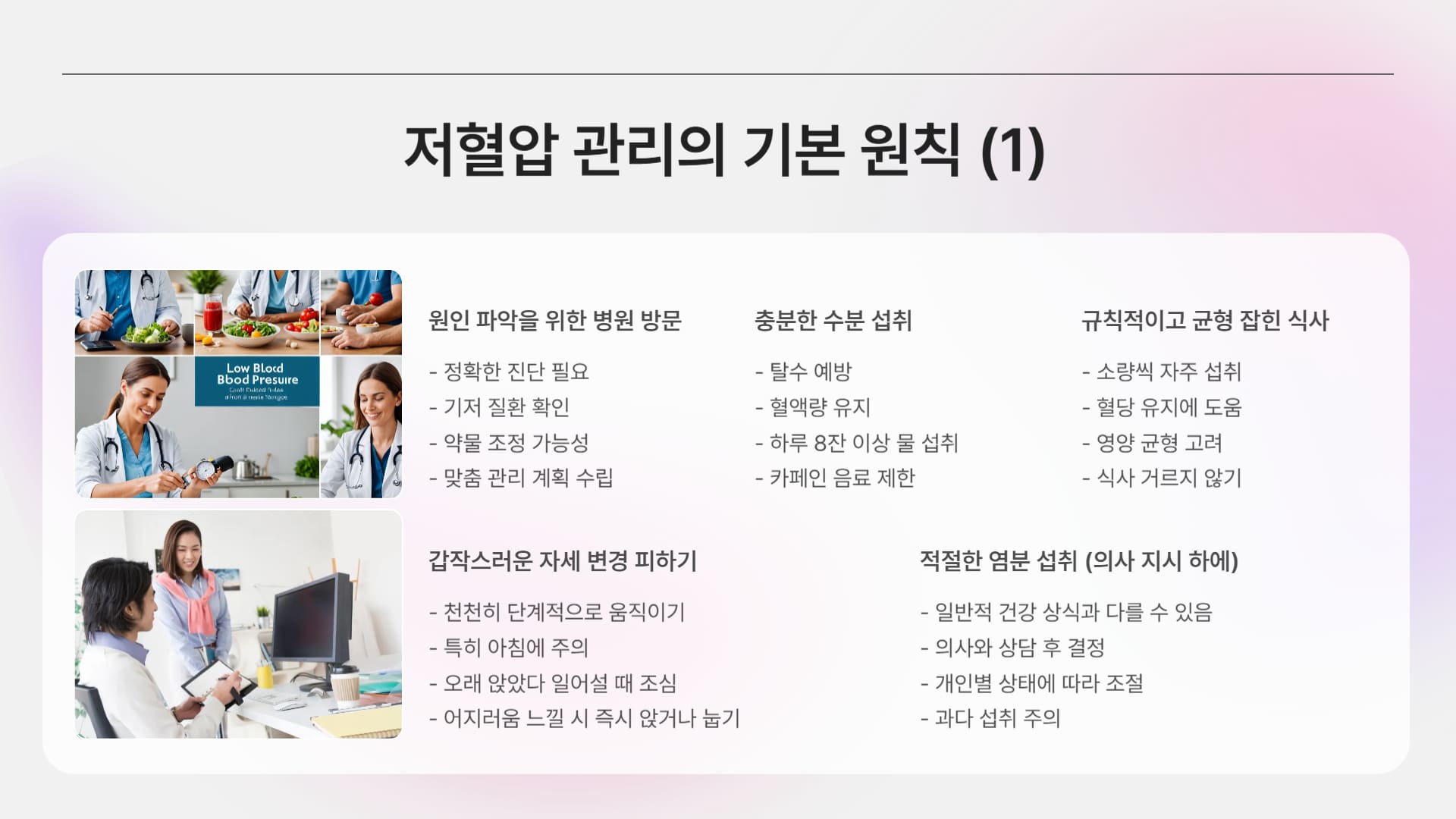 ▶ 저혈압 수치 확인 후 관리의 기본 원칙