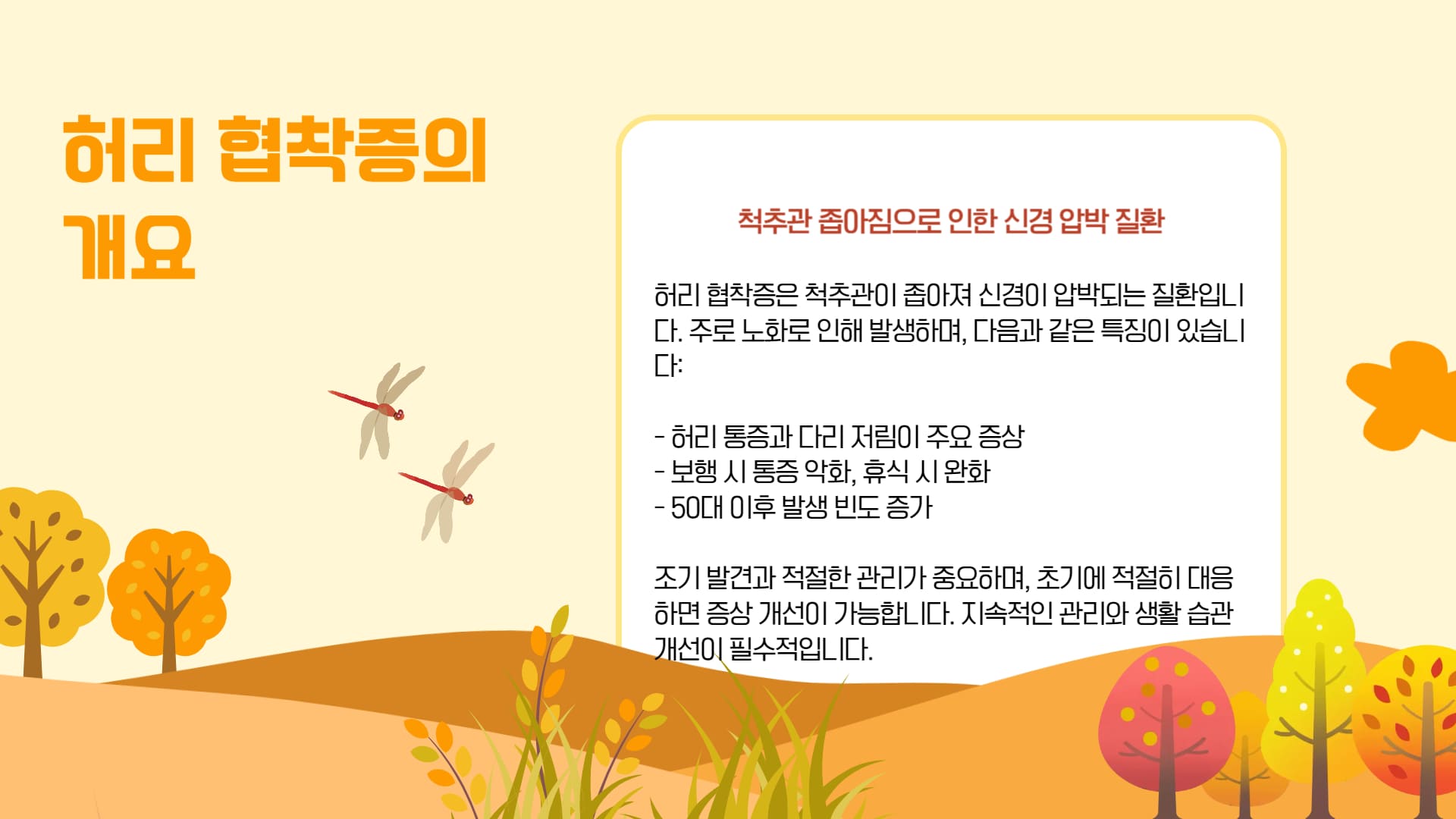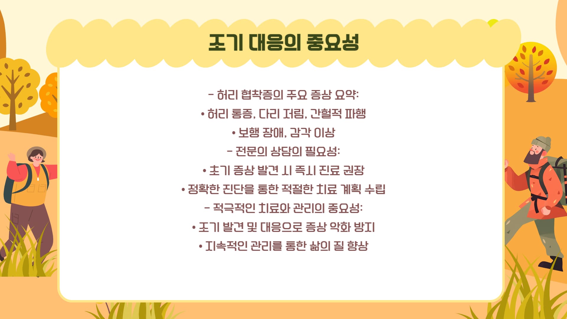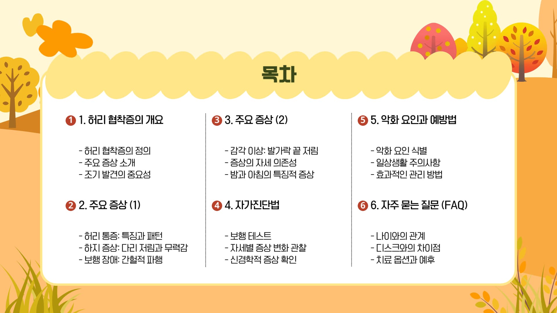 허리 협착증 증상을 정확히 파악하고 조기에 대응하는 것이 건강한 노후를 위한 첫걸음입니다. 간헐적 파행, 다리 저림, 허리 통증 등의 신호를 놓치지 말고 전문의 진료를 받으시기 바랍니다.