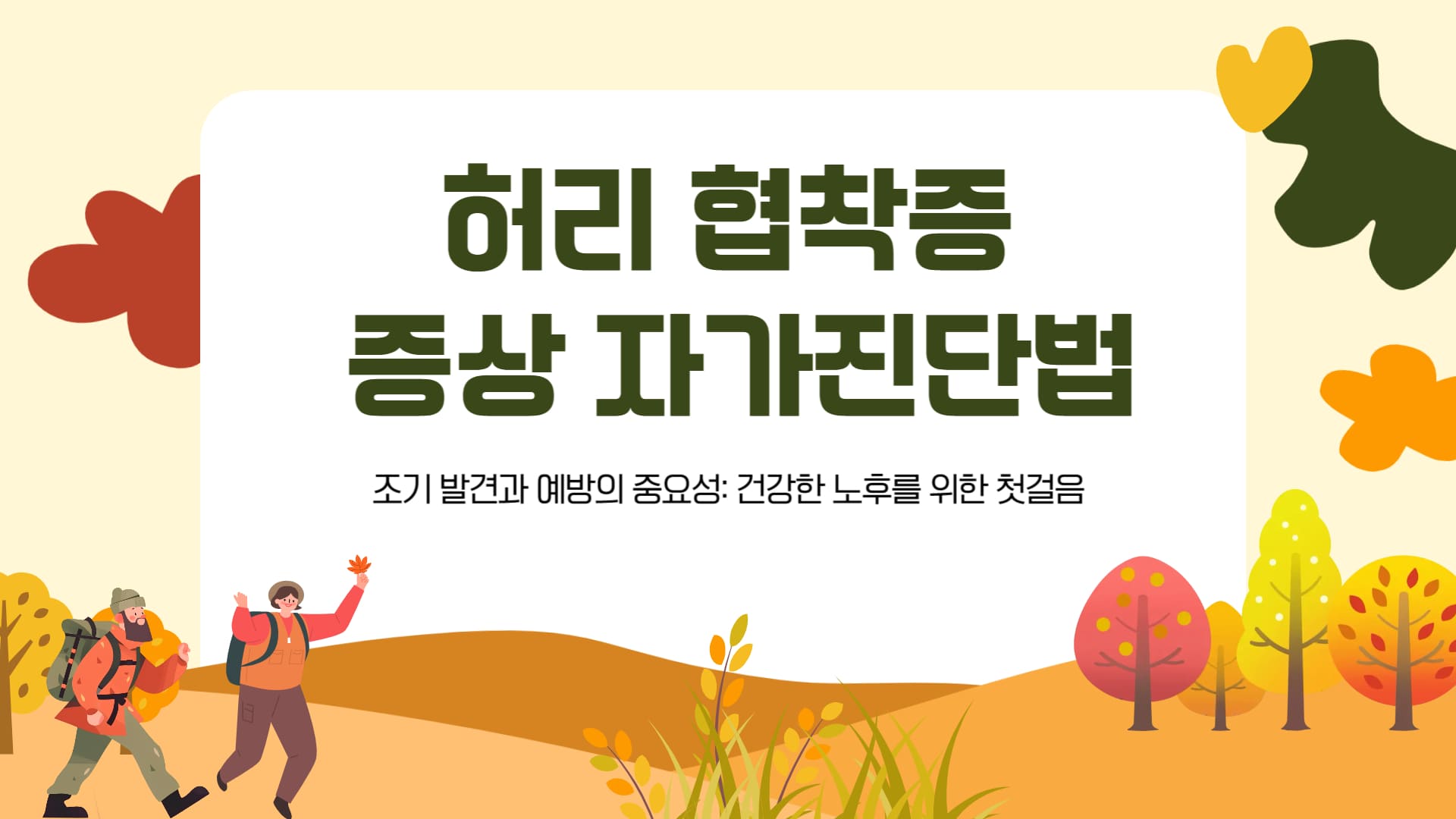 허리 협착증 증상을 스스로 확인할 수 있는 간단한 자가진단 방법들이 있습니다. 이러한 체크포인트를 통해 초기 징후를 놓치지 않는 것이 중요합니다.