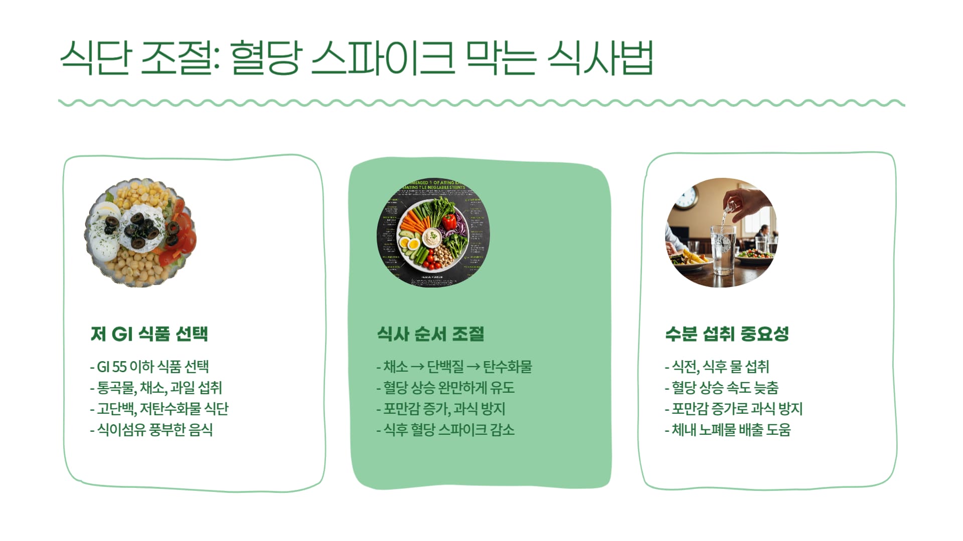 2. 식단 조절: 혈당 스파이크 막는 식사법
