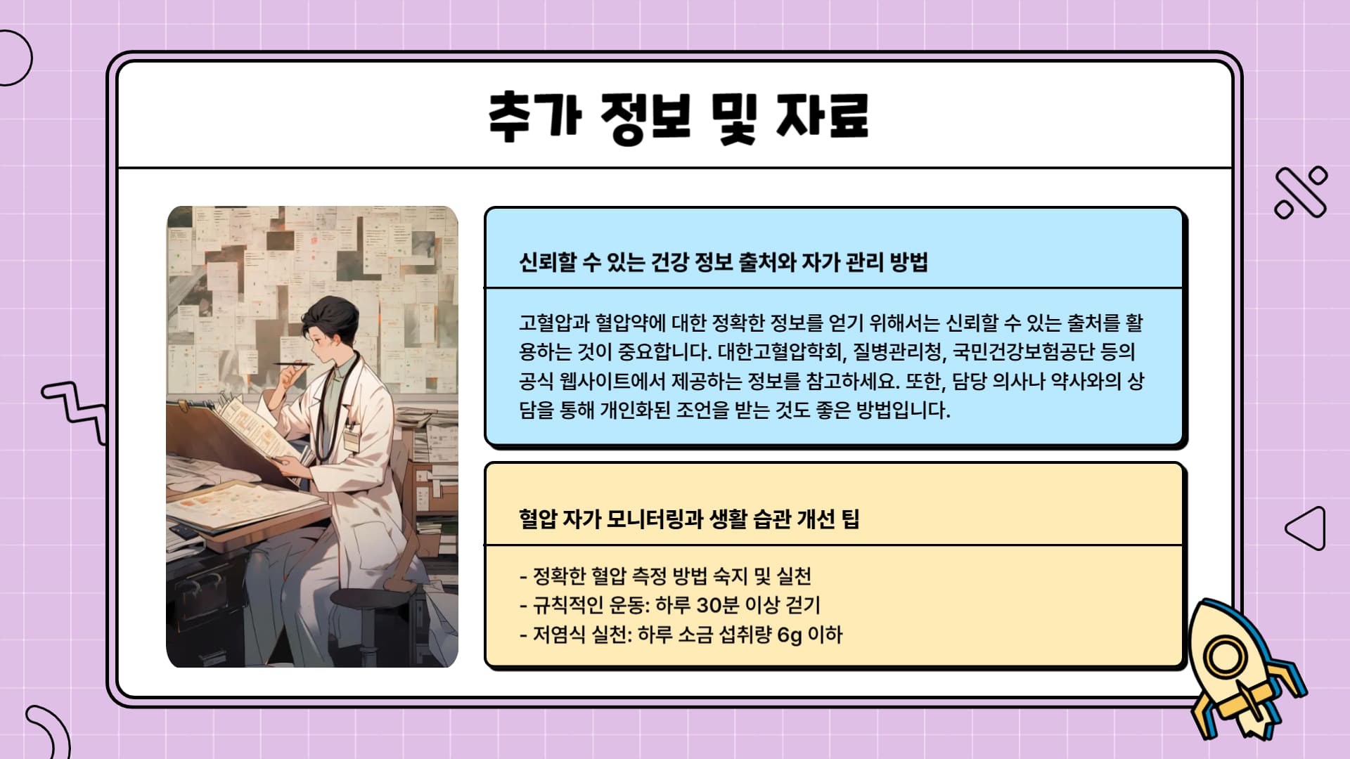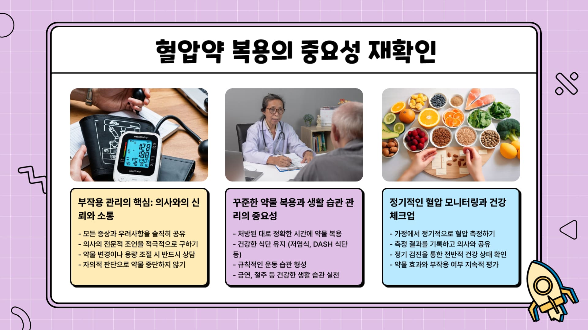 중요한 것은 전문가와의 적극적인 소통입니다. 혈압약 복용과 관련된 다양한 정보를 미리 알아두면 대처에 도움이 될 수 있습니다.