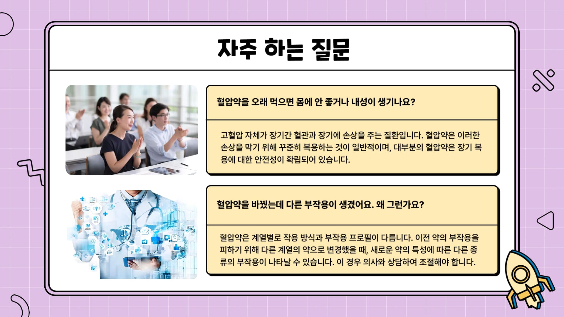 Q4: 혈압약을 오래 먹으면 몸에 안 좋거나 내성이 생기나요?