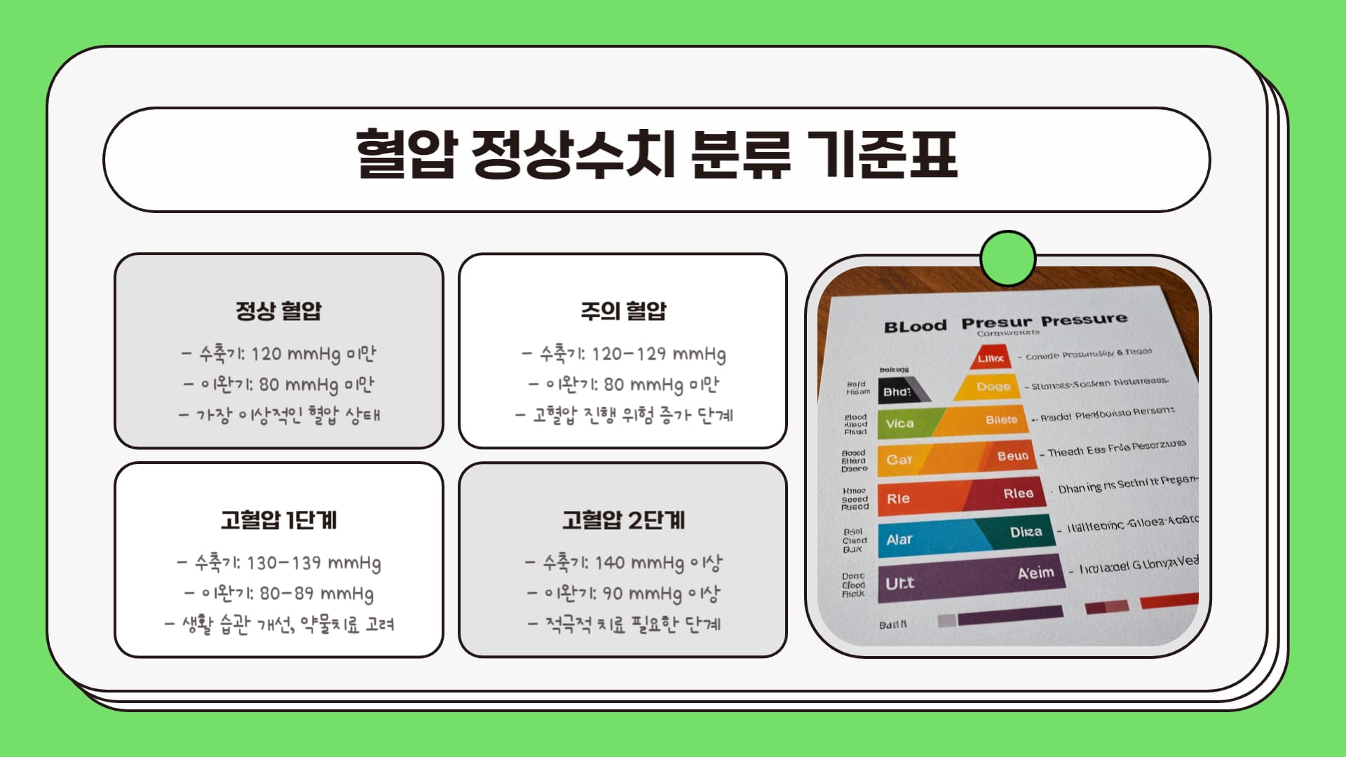 혈압 측정 후 나온 숫자가 위 표의 어느 분류에 속하는지 확인했다면, 각 분류가 어떤 의미를 가지는지 이해하는 것이 중요합니다. 이는 앞으로의 건강 관리 방향을 결정하는 데 도움이 됩니다.